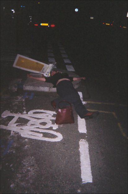 Becks lying in road |